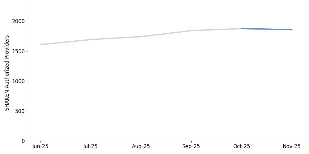Figure 3 shows that the number of SHAKEN-authorized providers in November was down 1.8% from the previous month.