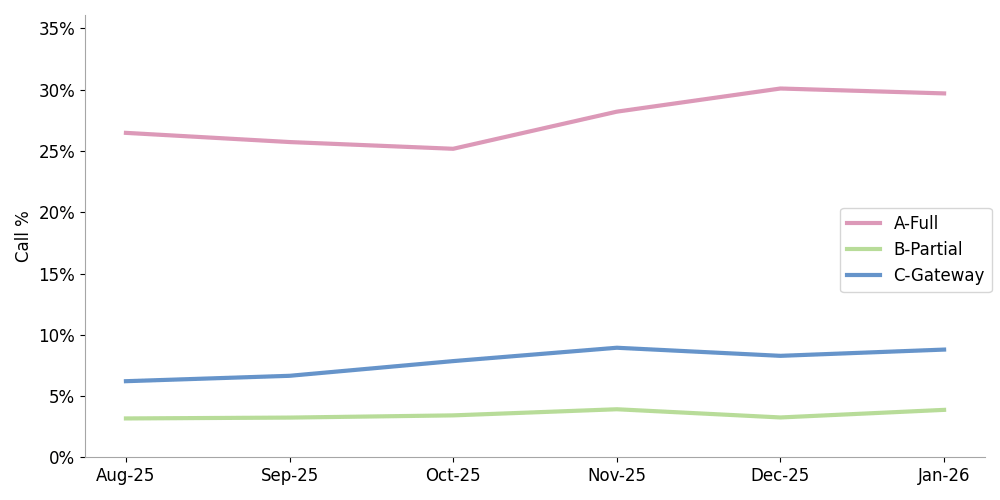 Figure 4. The Percentage of Signed Calls at Termination Last 6 Months