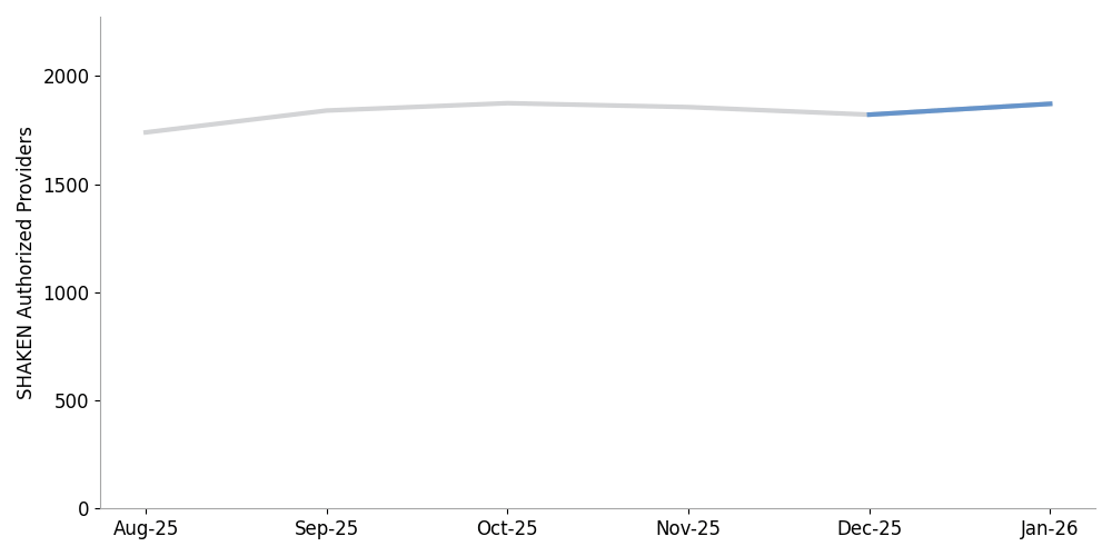 The number of SHAKEN-authorized providers increased slightly